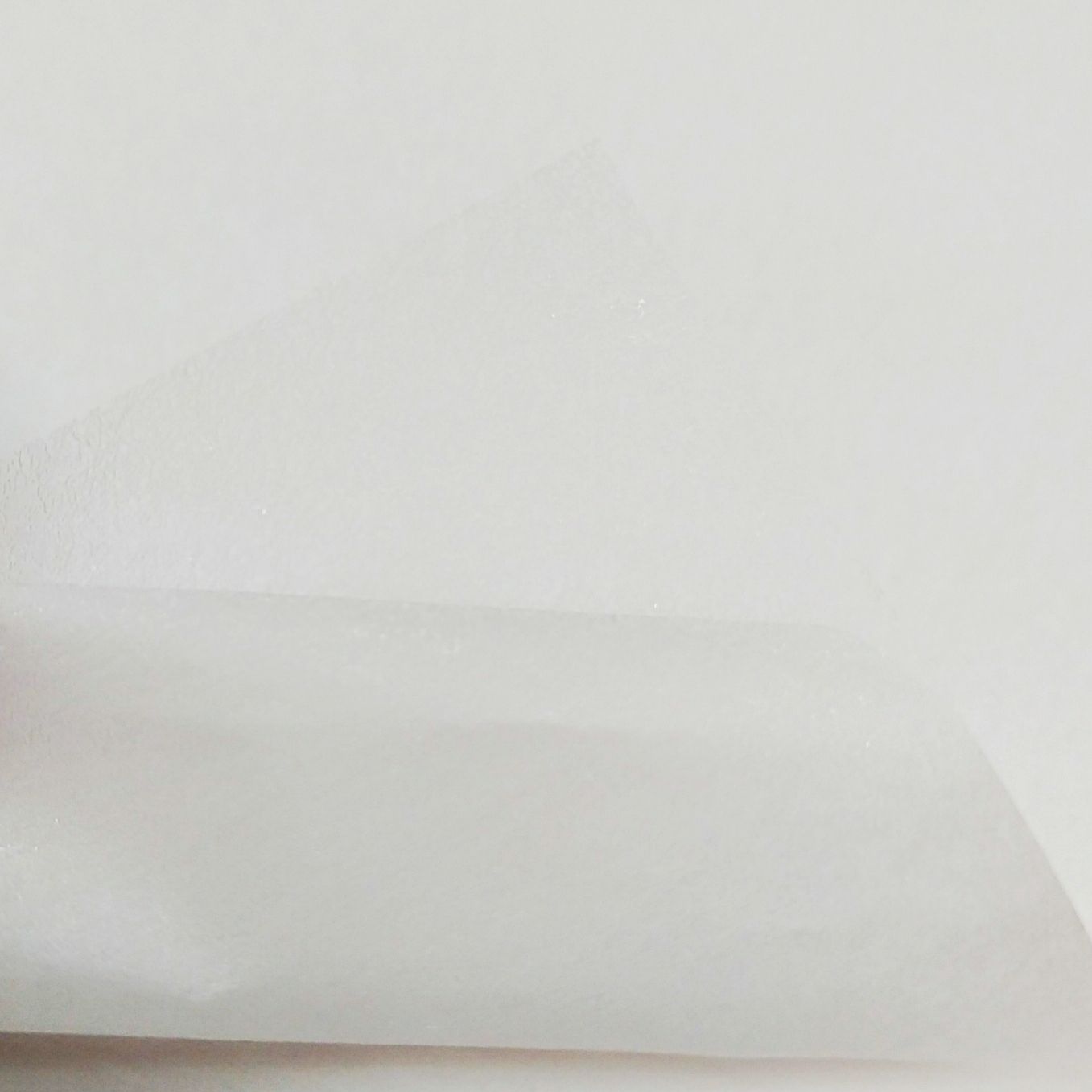 Se trata de una entretela fina, termoadhesiva por una cara, de color blanco.