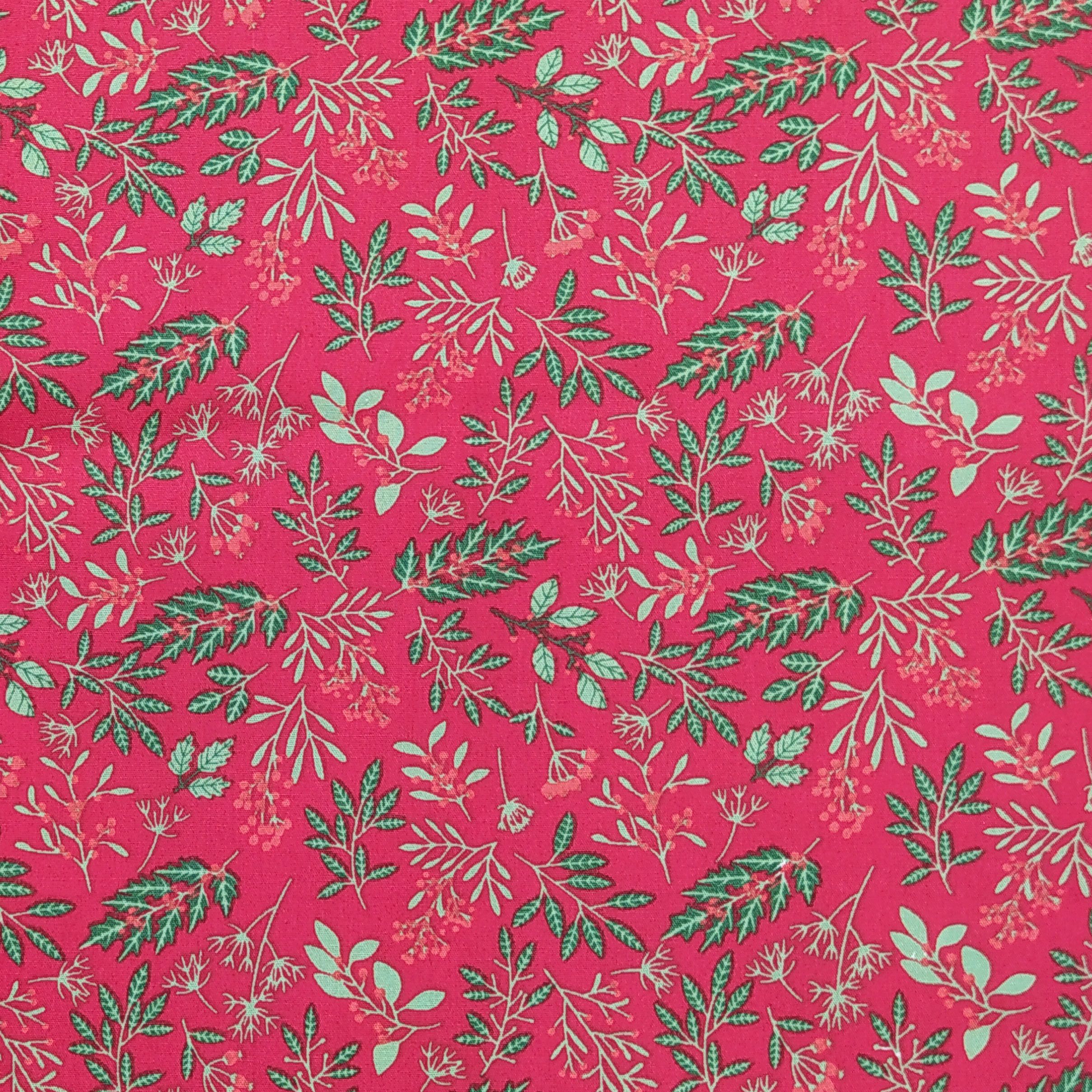 NV026 Navidad ramas fondo rojo