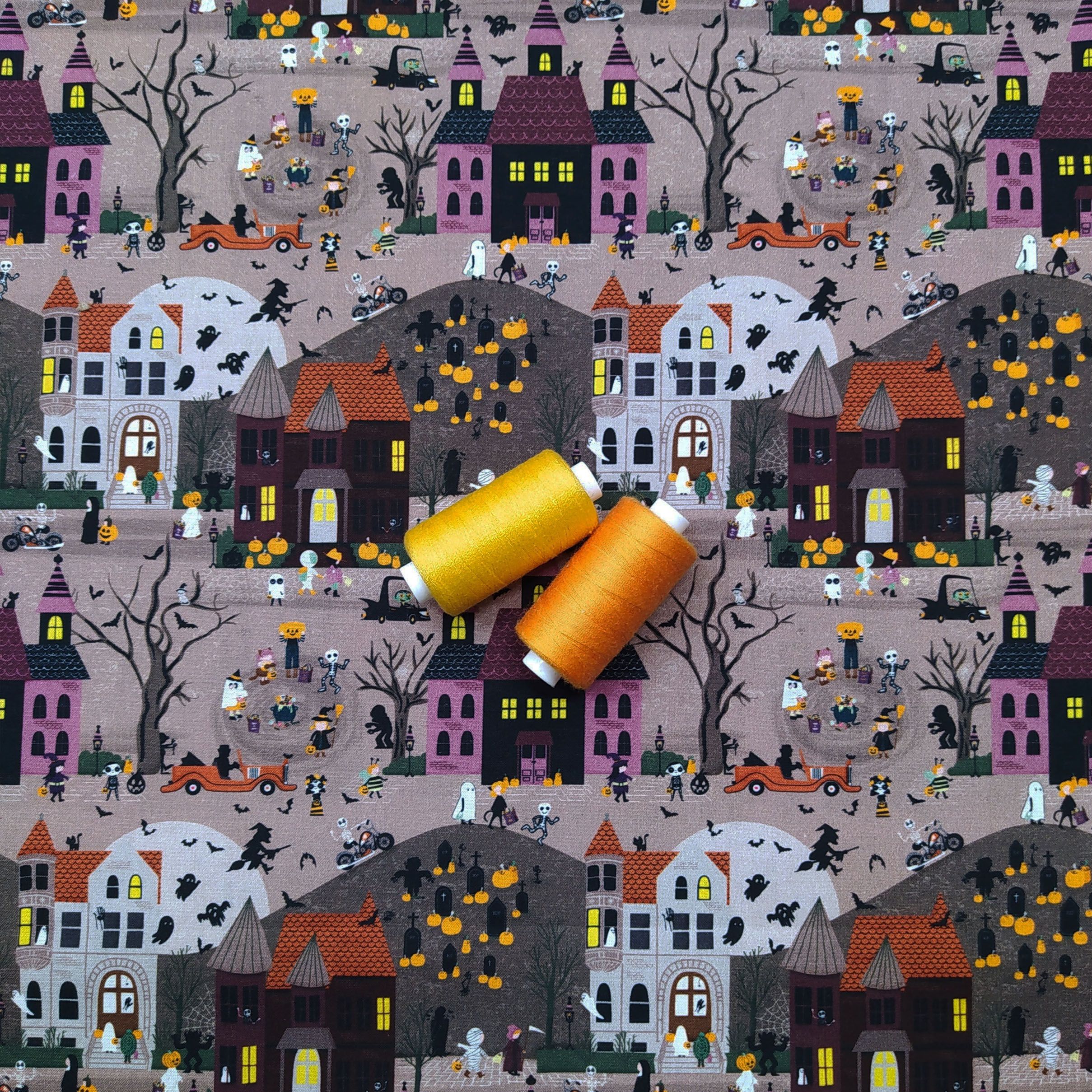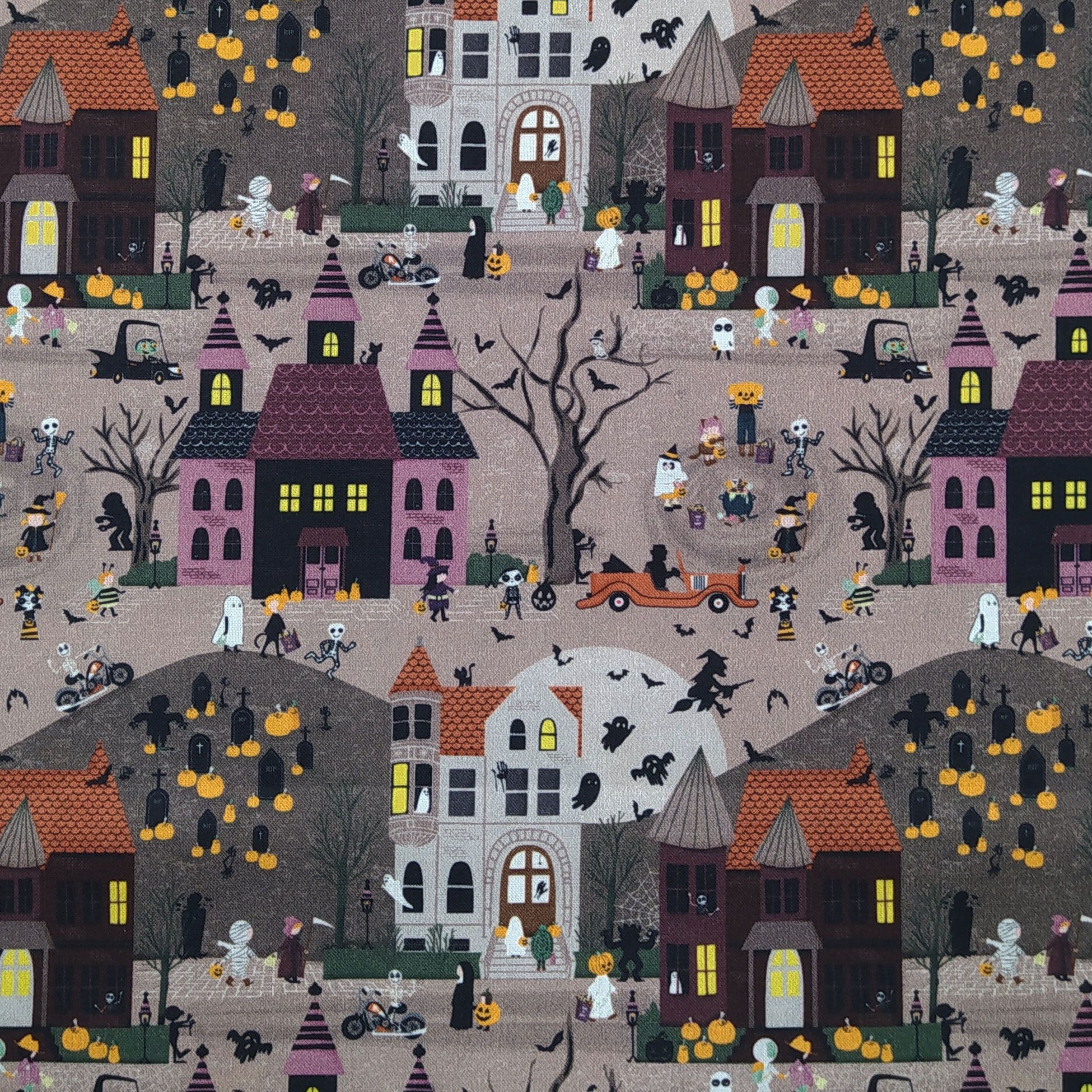 Tela de Halloween con casas de fondo