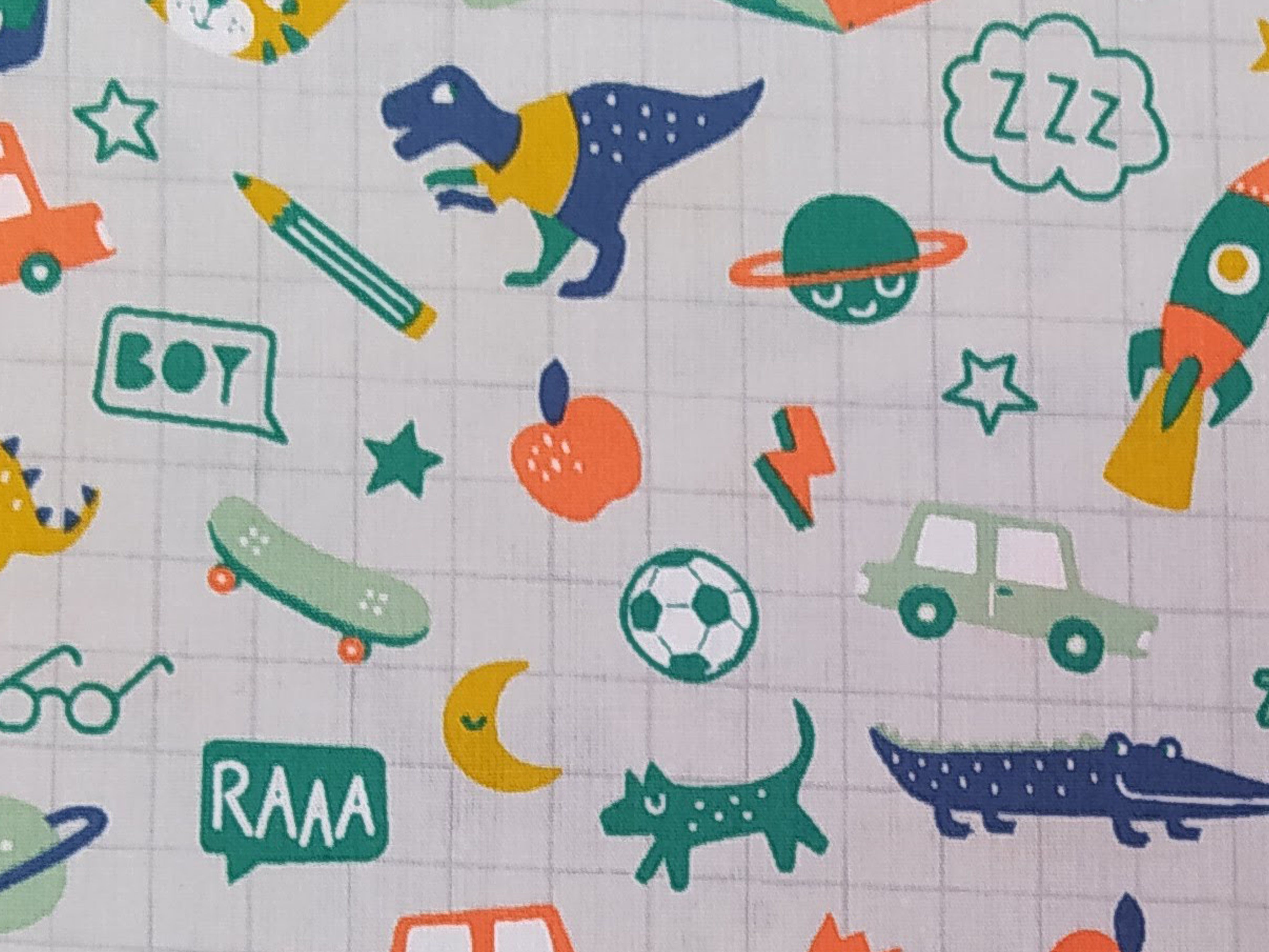 Tela infantil gris con juguetes